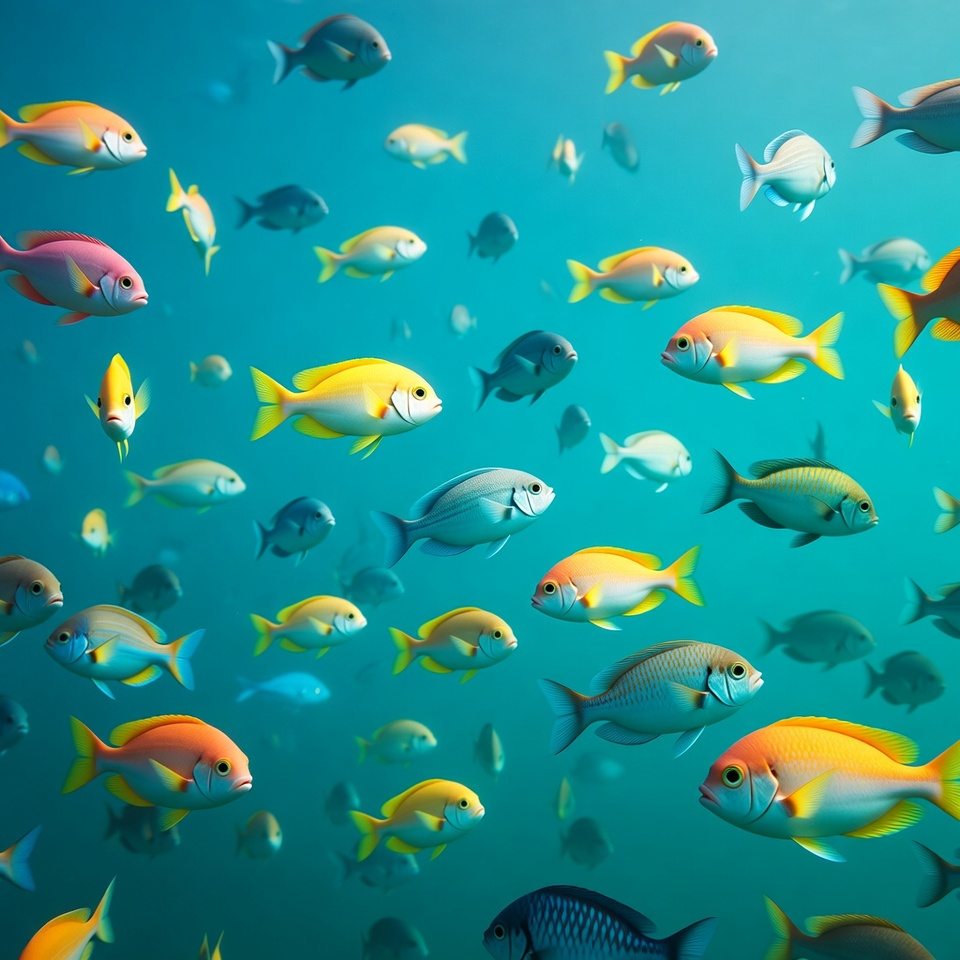 aquarium fish, blue fish, colorful fish, fish illustration, marine life, ocean, orange fish, pink fish, school of fish, sea animals, swimming fish, underwater, vibrant colors, yellow fish, tropical fish