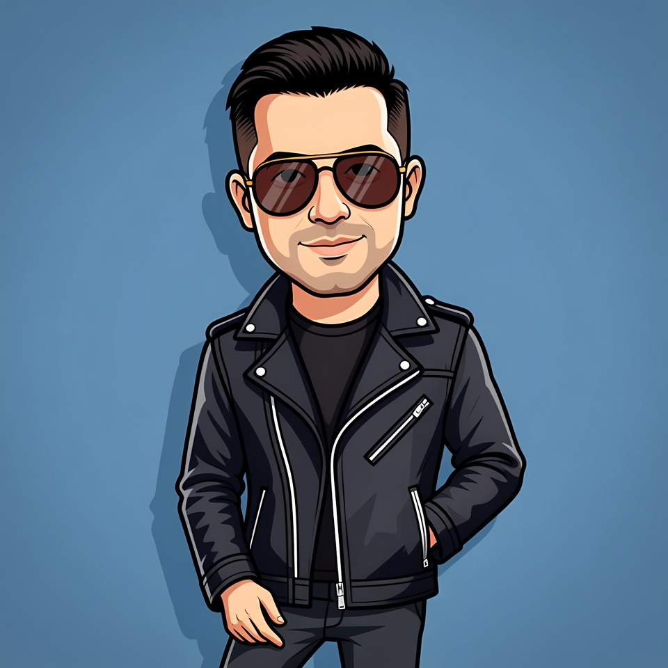 Cartoon man in leather jacket and sunglasses