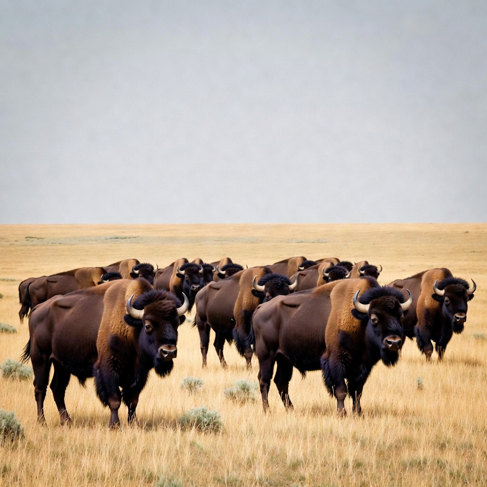 Herd of Bison on Prairie Grassland