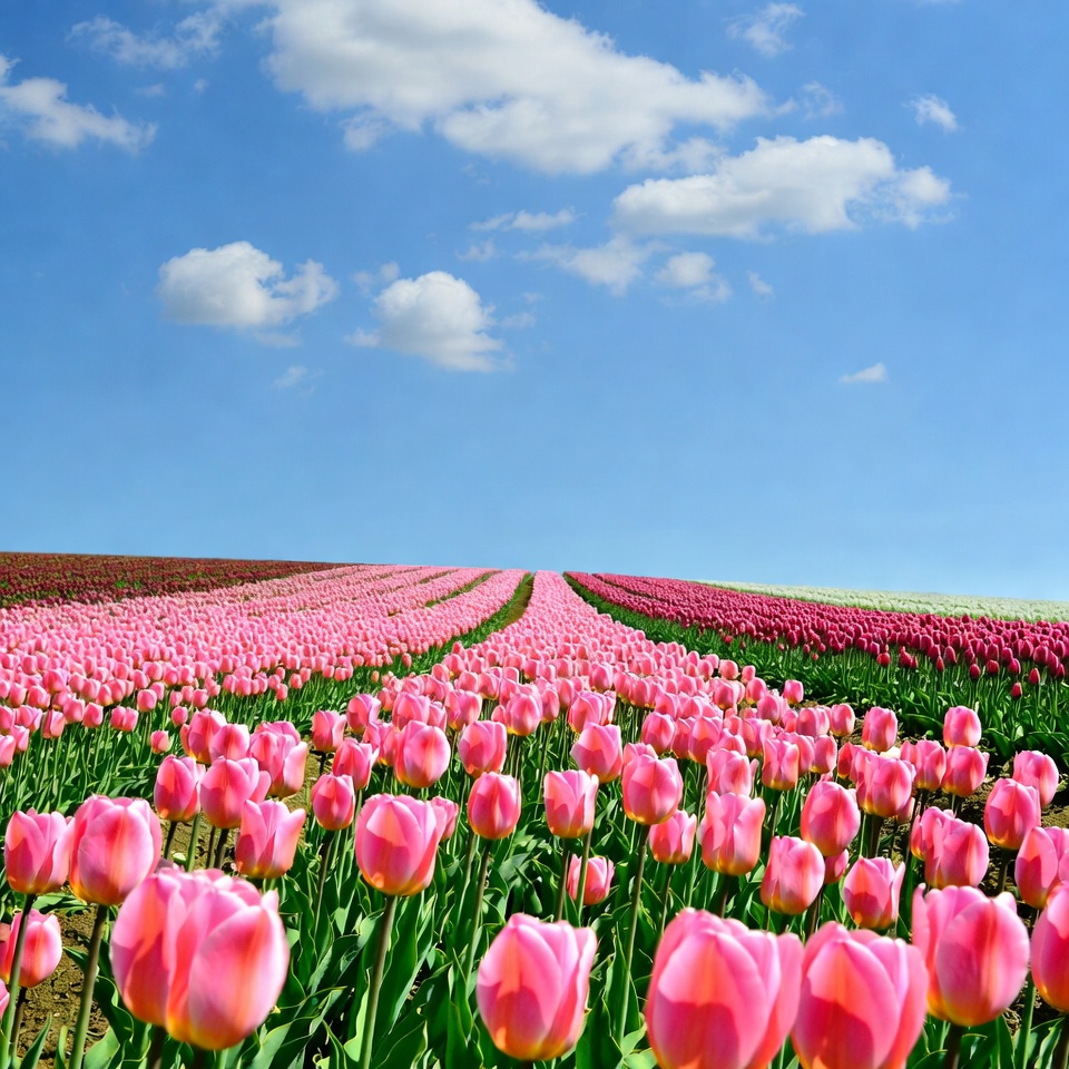 Colorful Tulip Fields Under Blue Sky