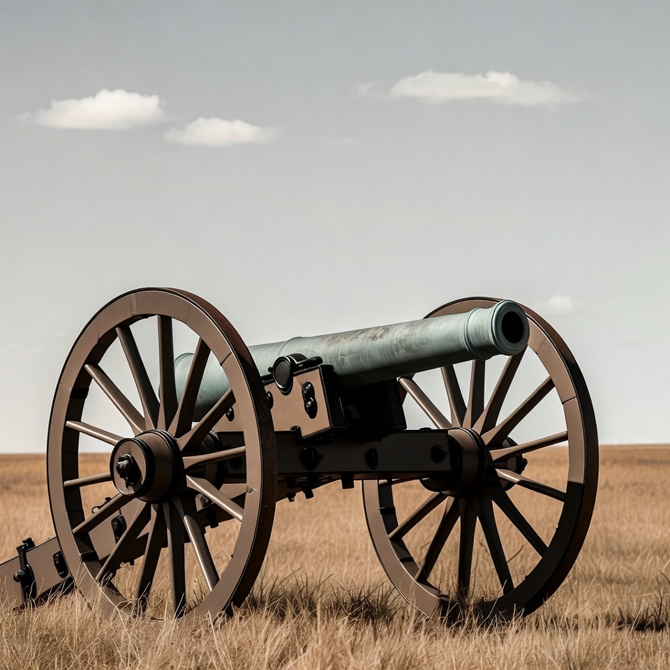 artillery, civil war cannon, clouds, field, grass, historical weapon, isolated background, military history, outdoor, prairie, rusted metal, sky, vintage cannon, wooden wheels, cannon