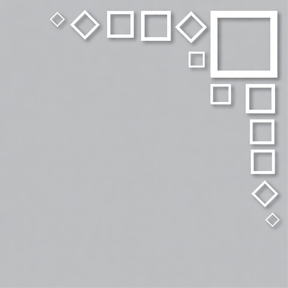A collection of white square and diamond-shaped frames arranged in a corner pattern on a light gray background. The frames vary slightly in size and are positioned to form an L-shape along the top and right edges. The design features clean lines and a minimalist style.
