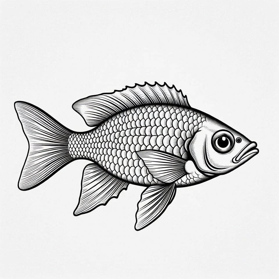 Black and white line art fish