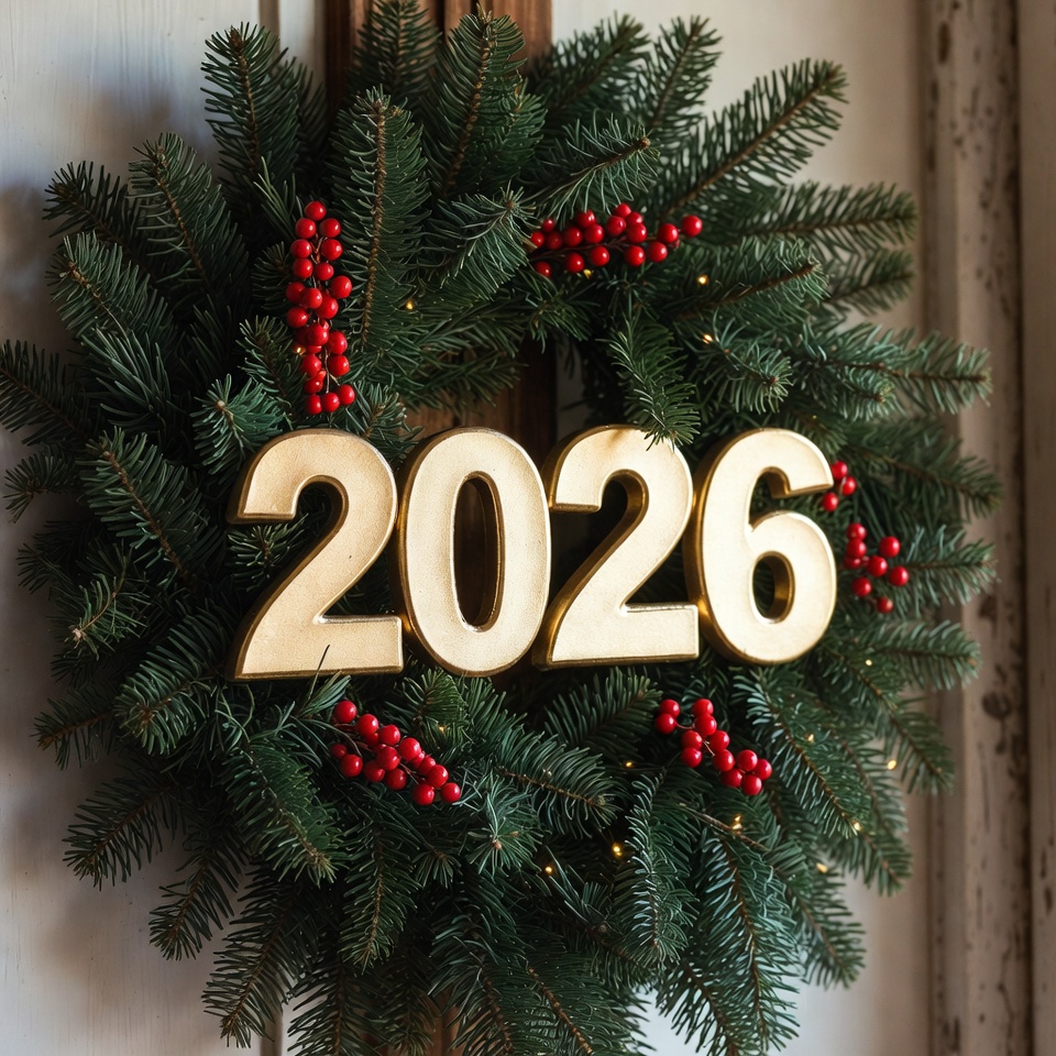 2026 Wreath with Pine Branches and Berries
