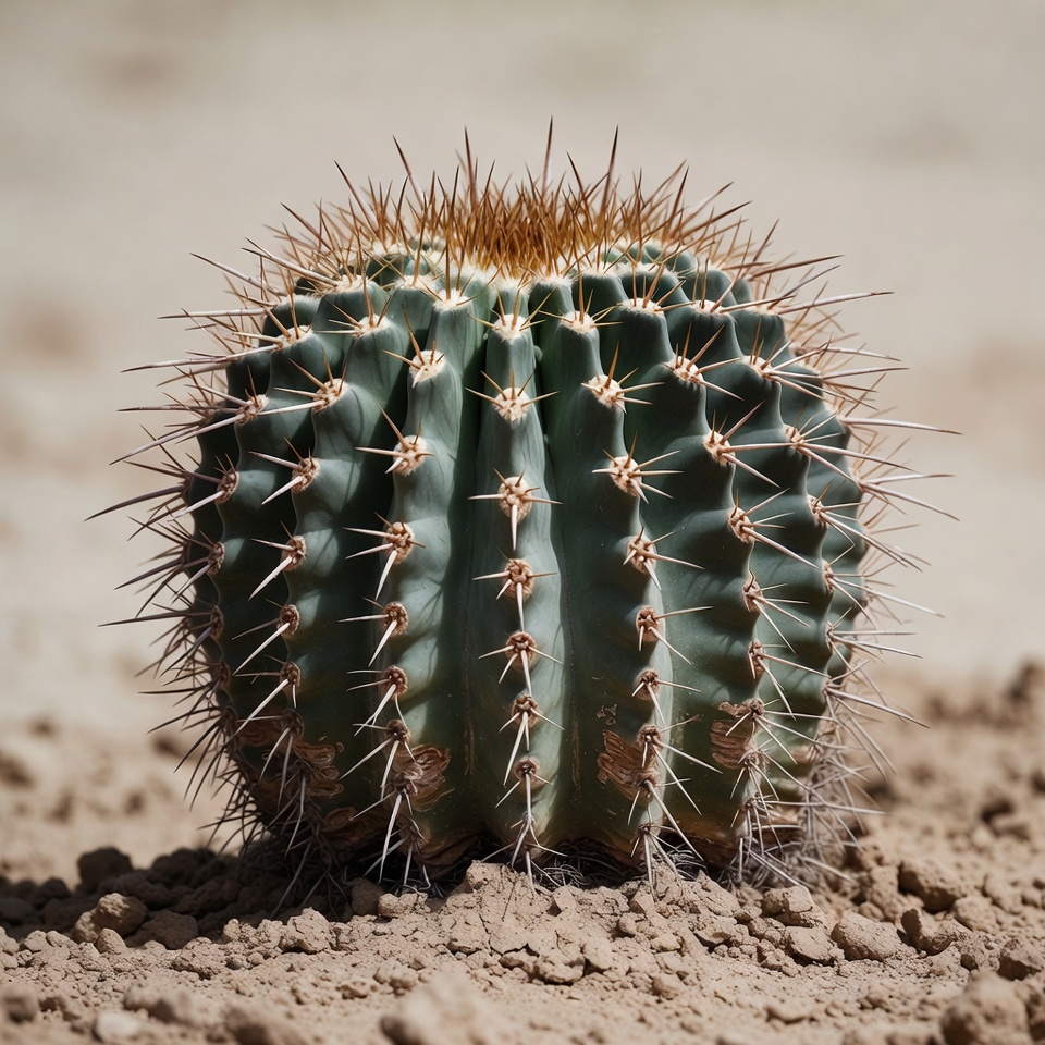 arid, cactus, desert, desert plant, echinocactus, fuzzy top, golden spines, green cactus, isolated, nature, outdoor, plant, ribs, round cactus, sand background, spines, spiny cactus, succulent, barrel cactus