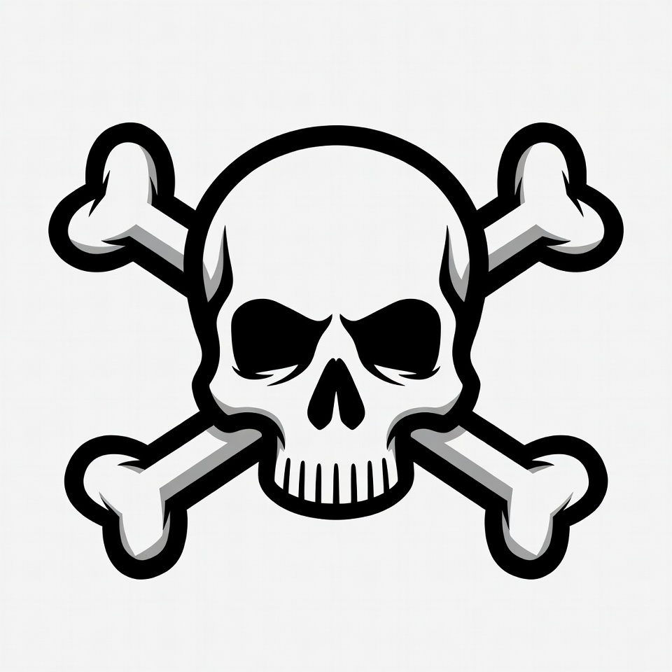 black white, bones, clipart, crossbones, danger, death symbol, graphic, illustration, isolated background, line art, pirate skull, poison, skull and crossbones, symbol, skull