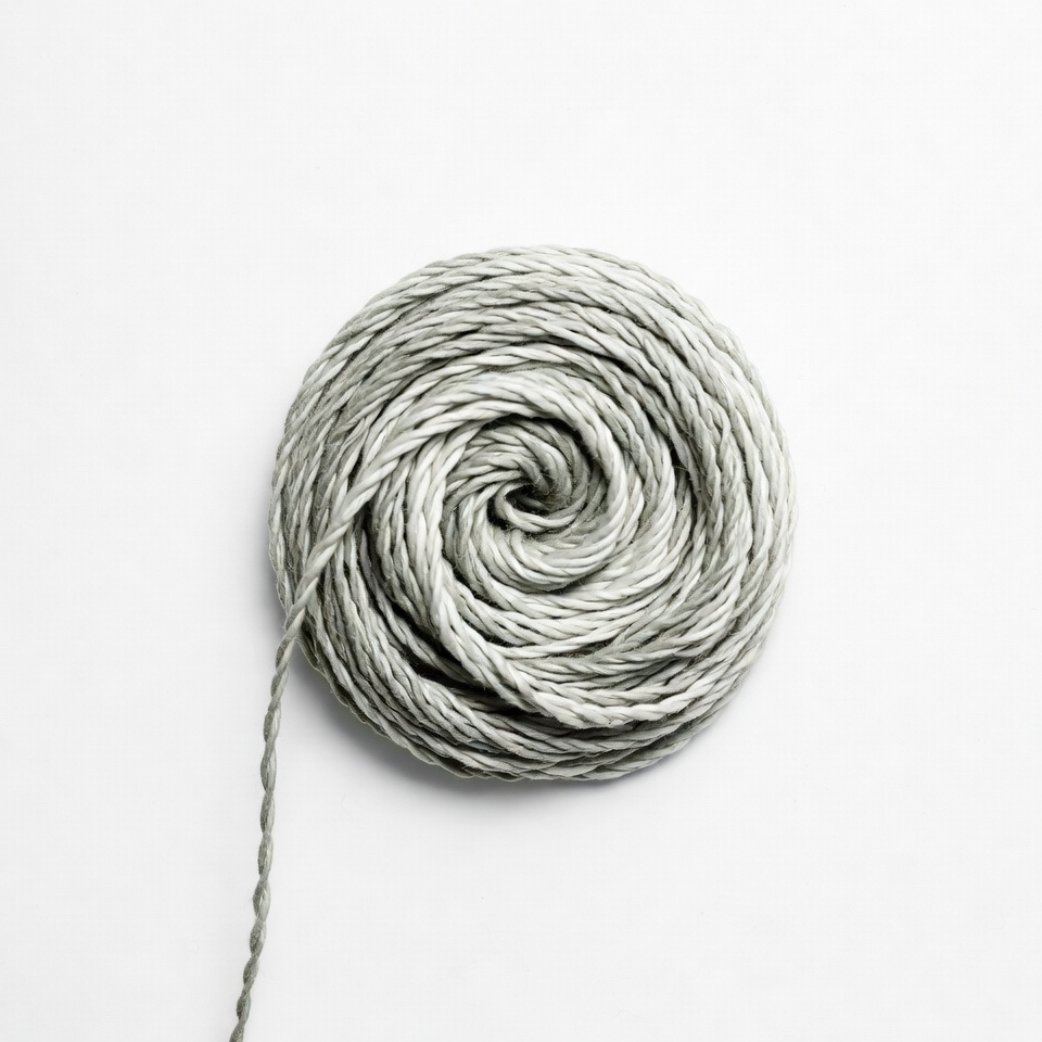 coiled yarn, craft, crafting, fiber, gray yarn, isolated, knitting, spool, thread, top view, white background, wool, yarn ball, yarn