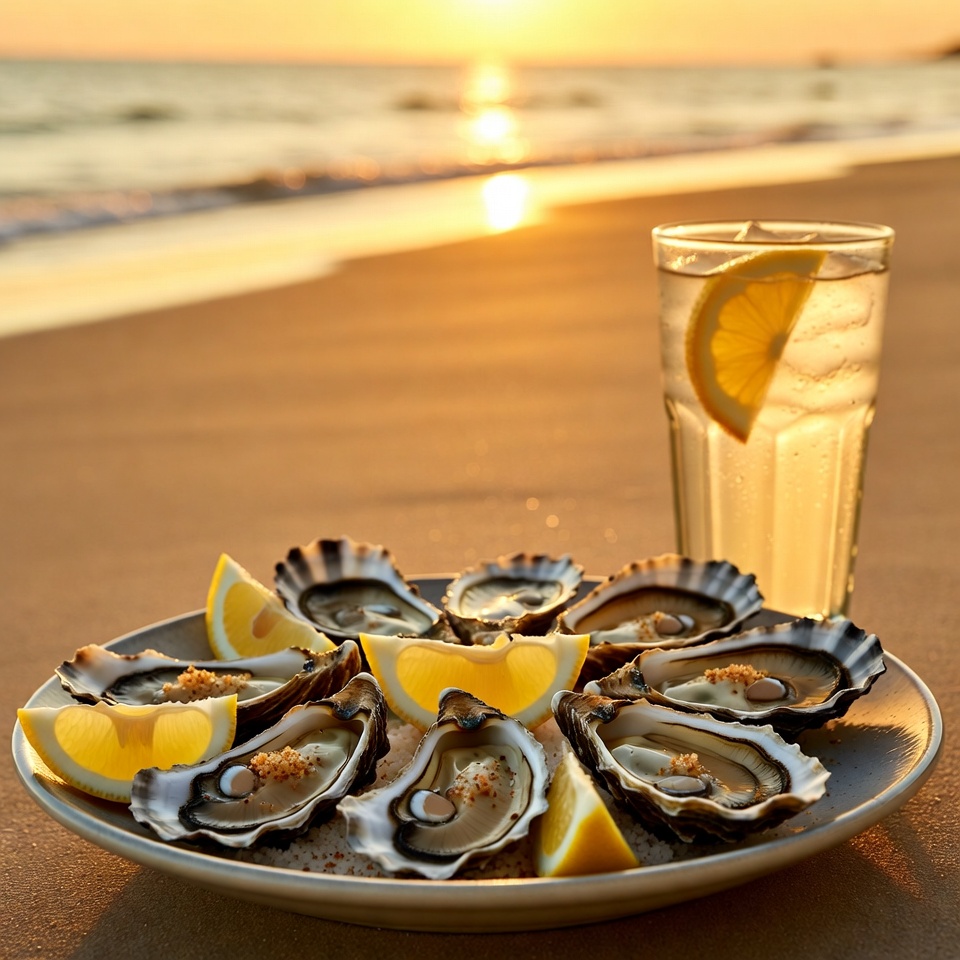 Oysters with Lemon and Gin Tonic Beach Sunset