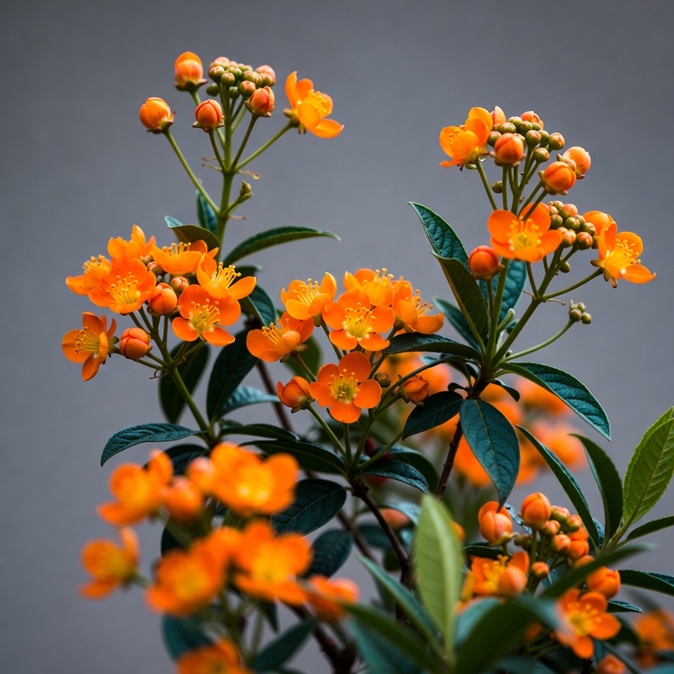 Orange Hypericum Flowers with Buds