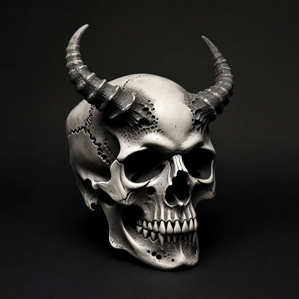 Demon Skull with Curved Horns