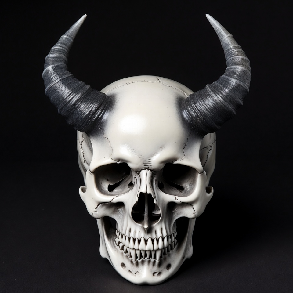 Demon Skull with Curved Horns