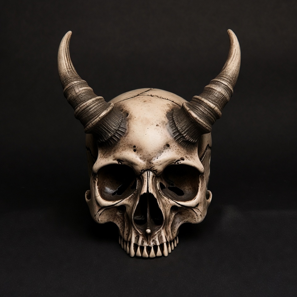 Halloween, black background, bone, curved horns, dark art, demon, devil skull, evil skull, fantasy skull, gothic, horns, horror prop, isolated background, macabre, prop, skeletal, skull, skull head, demon skull