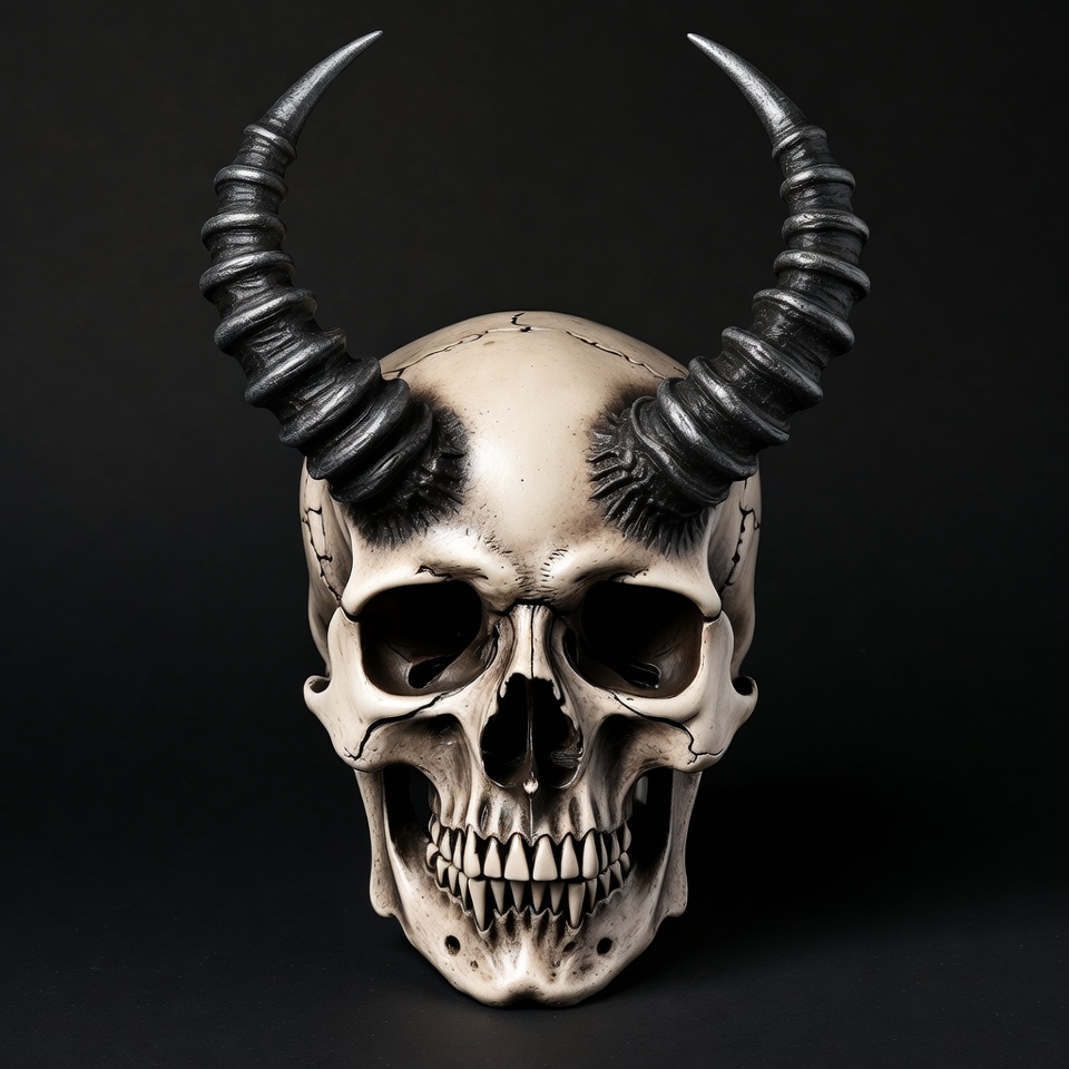Demon Skull with Curved Horns