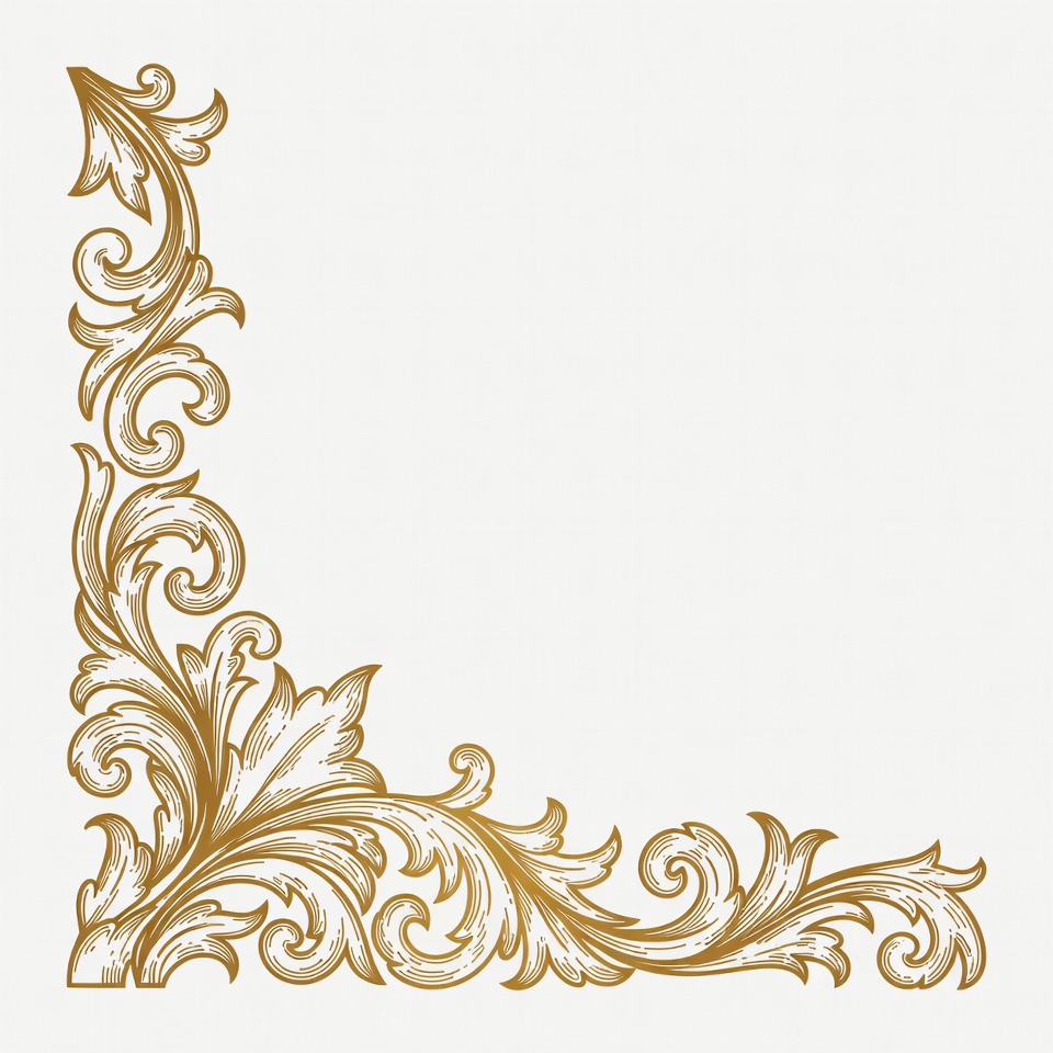 artistic border, baroque style, clipart, corner border, decorative element, elegant design, floral design, foliage design, gold border, golden filigree, illustration, isolated background, leaf motif, line art, ornamental frame, rococo pattern, swirling vines, vine pattern, vintage ornament, ornate corner