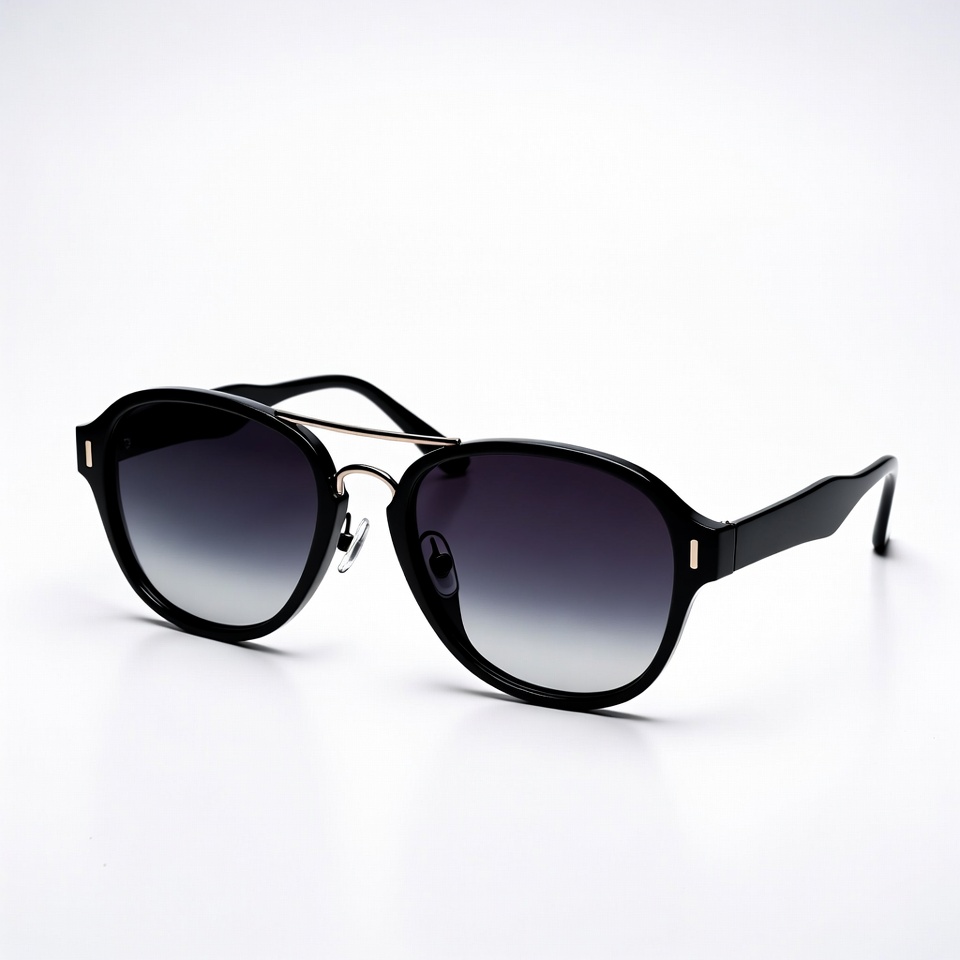 aviator sunglasses, black frame, designer glasses, eyewear, fashion eyewear, gold bridge, gradient lenses, gray lenses, isolated background, luxury sunglasses, pilot style, polarized lenses, shades, stylish eyewear, sunglasses