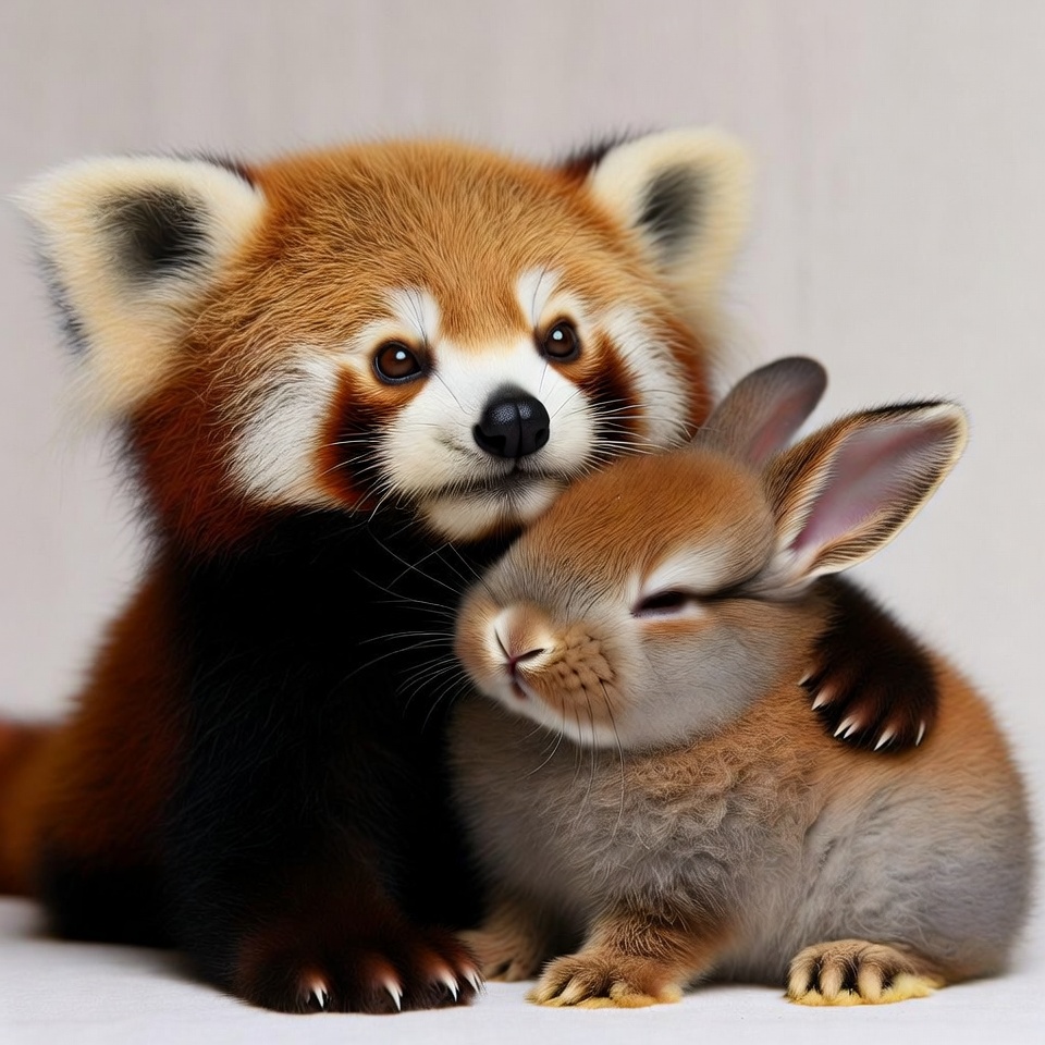 Red Panda Hugging Bunny