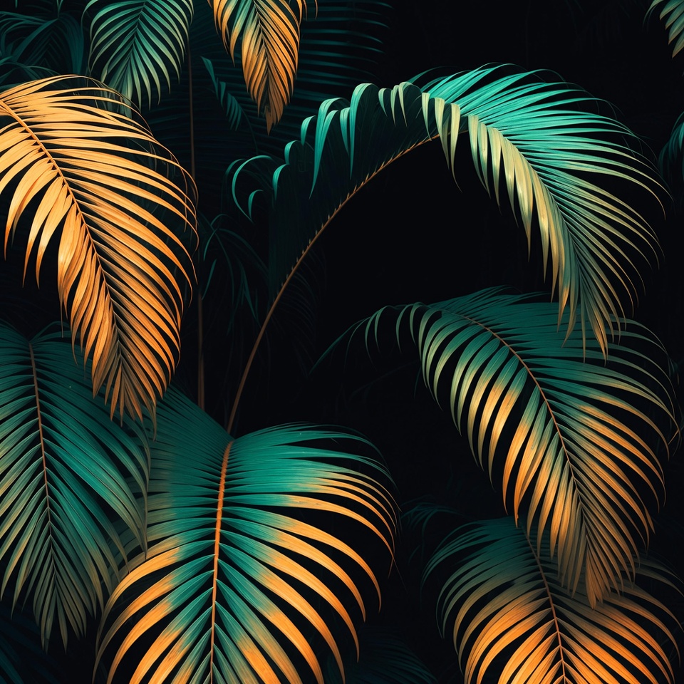 Vibrant Tropical Palm Leaves on Black