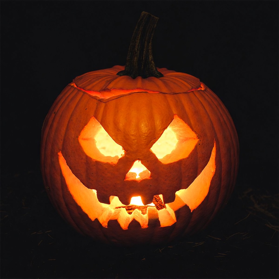 Halloween, candle light, carved face, carved pumpkin, dark background, glowing face, isolated, jagged teeth, lit pumpkin, orange pumpkin, pumpkin, scary face, spooky, toothy grin, triangular eyes, jack-o-lantern