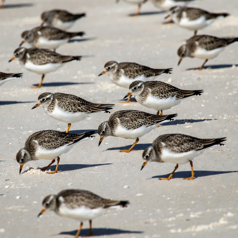 Flock of Sanderlings on Beach