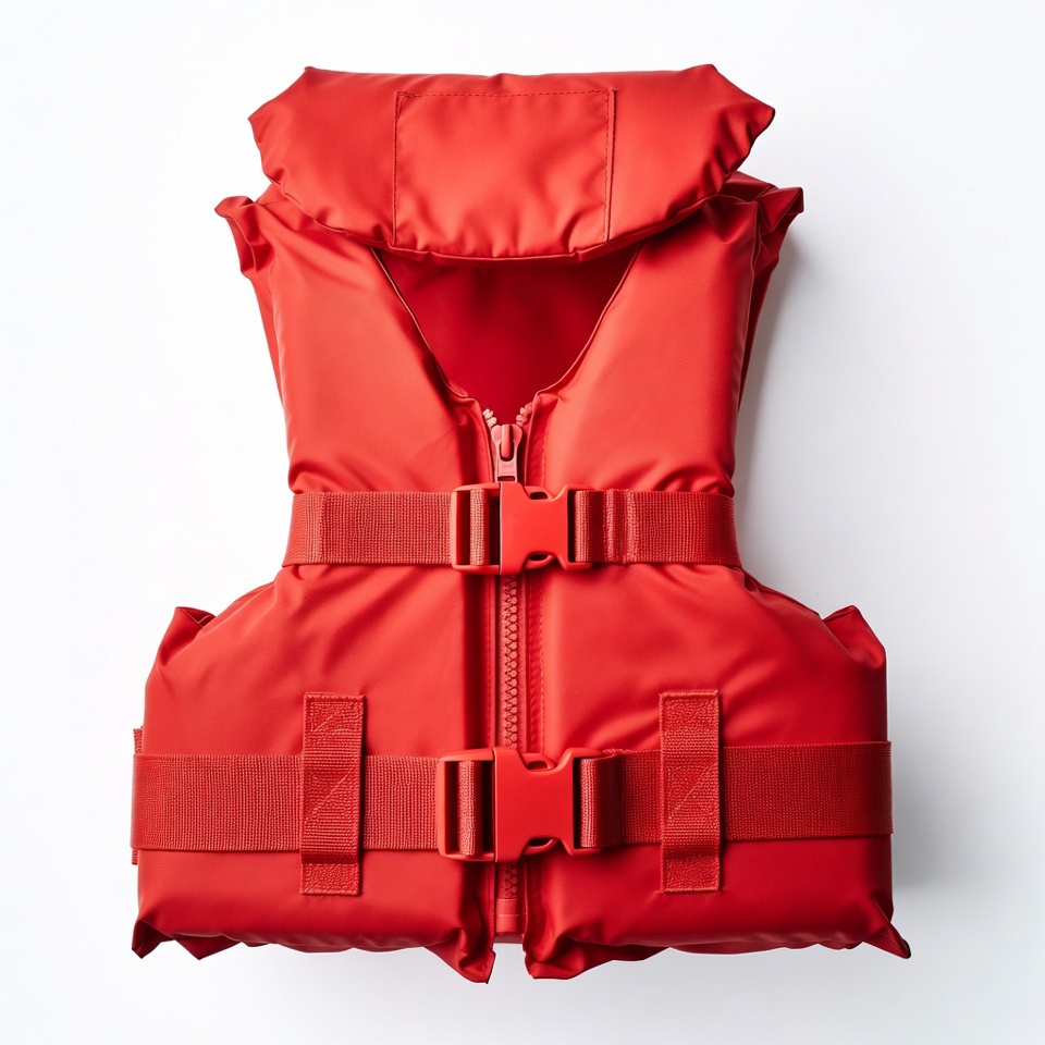 buckles, child safety, children's life jacket, flotation device, isolated background, personal flotation, red life vest, red vest, safety vest, straps, swimming vest, water safety, white background, zipper, life jacket
