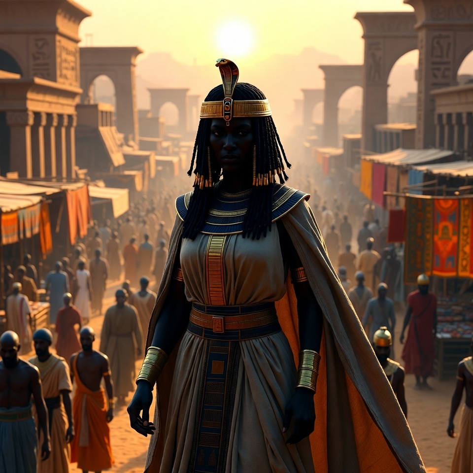 Egyptian Queen in Ancient Marketplace