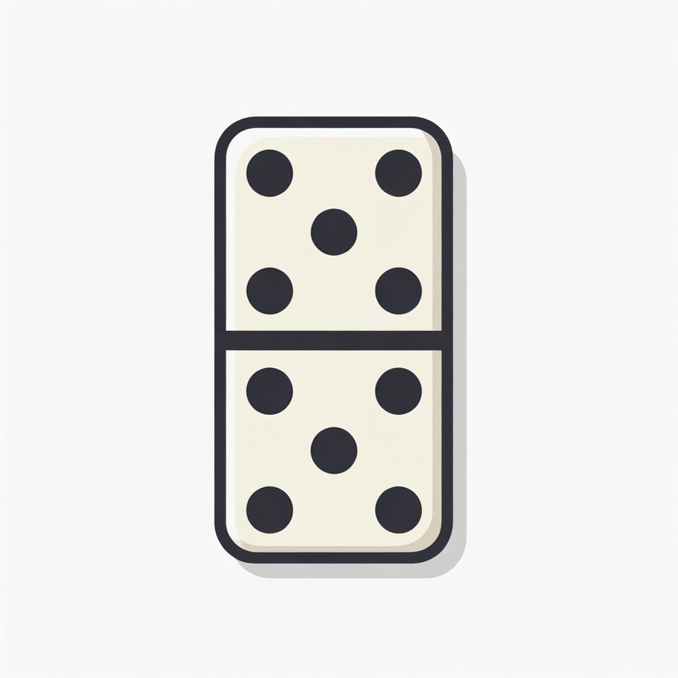 black dots, board game, clipart, domino piece, double six, flat design, game tile, gaming, illustration, isolated background, outline, six pips, vector, white tile, domino