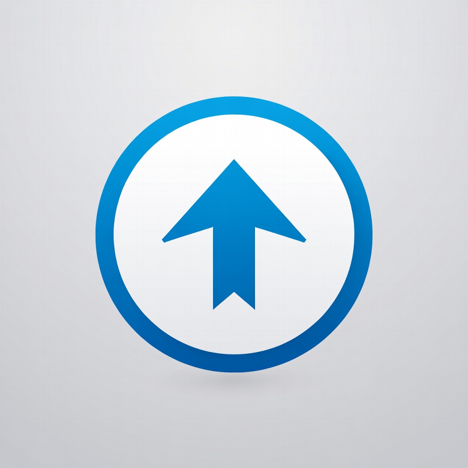 A white upward-pointing arrow is centered inside a blue circular outline. The design features a clean, simple icon on a light gray background. The arrow and circle have a modern, flat graphic style.