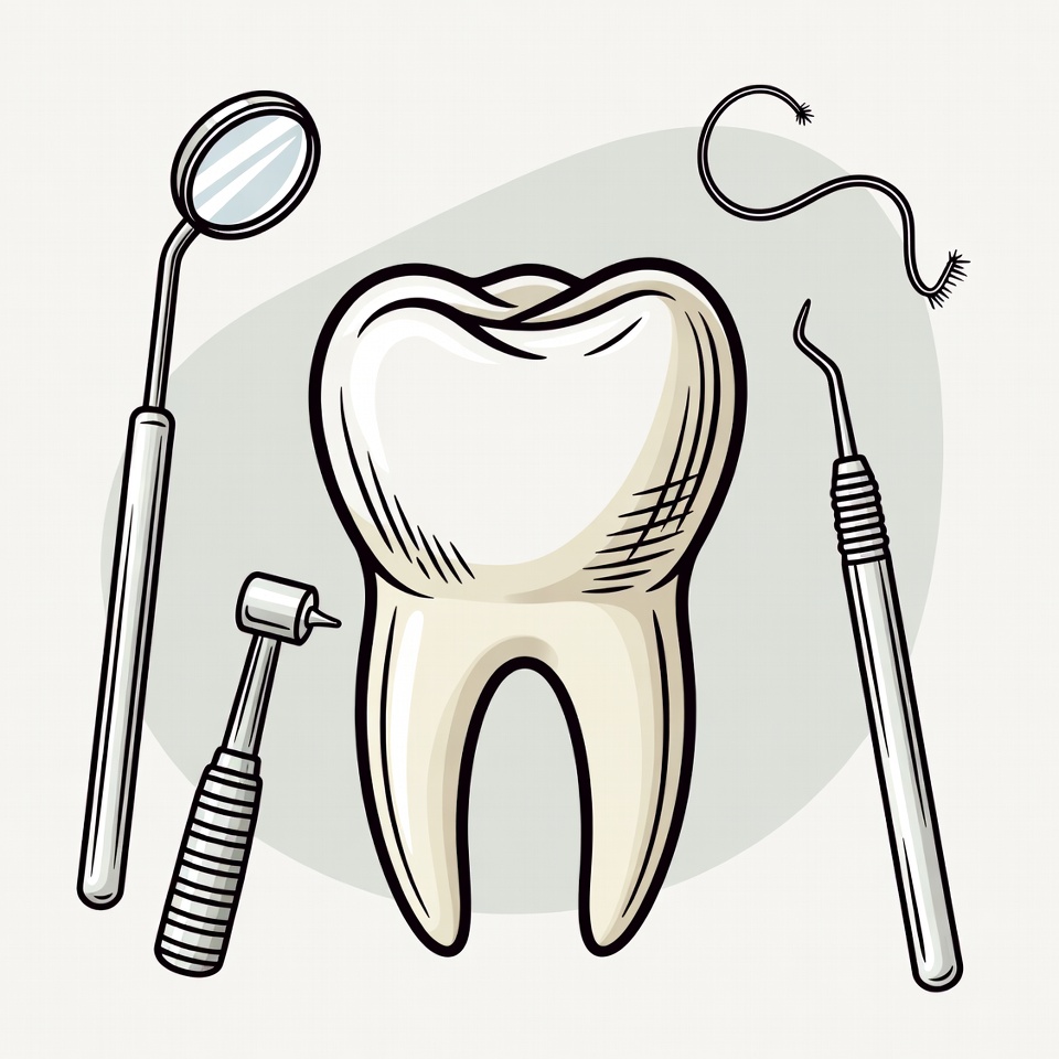 Dental Tools and Tooth Illustration