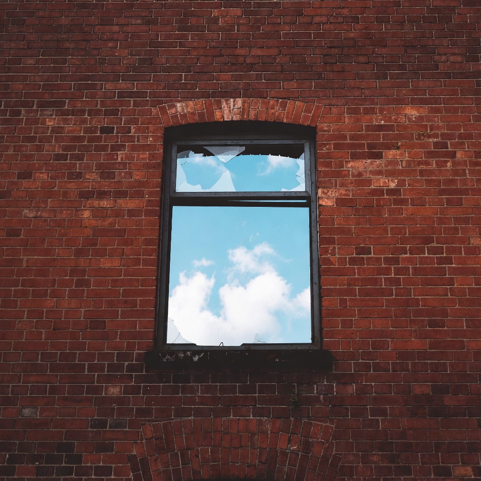 Broken Window in Red Brick Wall