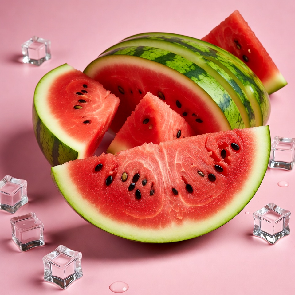 Sliced Watermelon with Ice Cubes