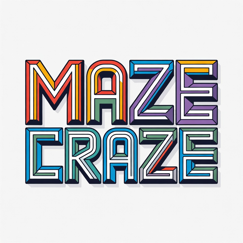 bevel edges, bold letters, clipart, colorful text, craze, graphic design, illustration, isolated background, logo design, maze, multicolor, outlined font, rainbow colors, typography, vibrant, maze craze