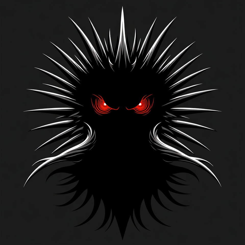 black silhouette, clipart, dark art, evil eyes, fantasy creature, fierce demon, furry demon, glowing eyes, horror demon, illustration, isolated background, jagged spikes, menacing face, monster illustration, red eyes, sharp spikes, spiked demon, spikes, vector art, white spikes, demon face