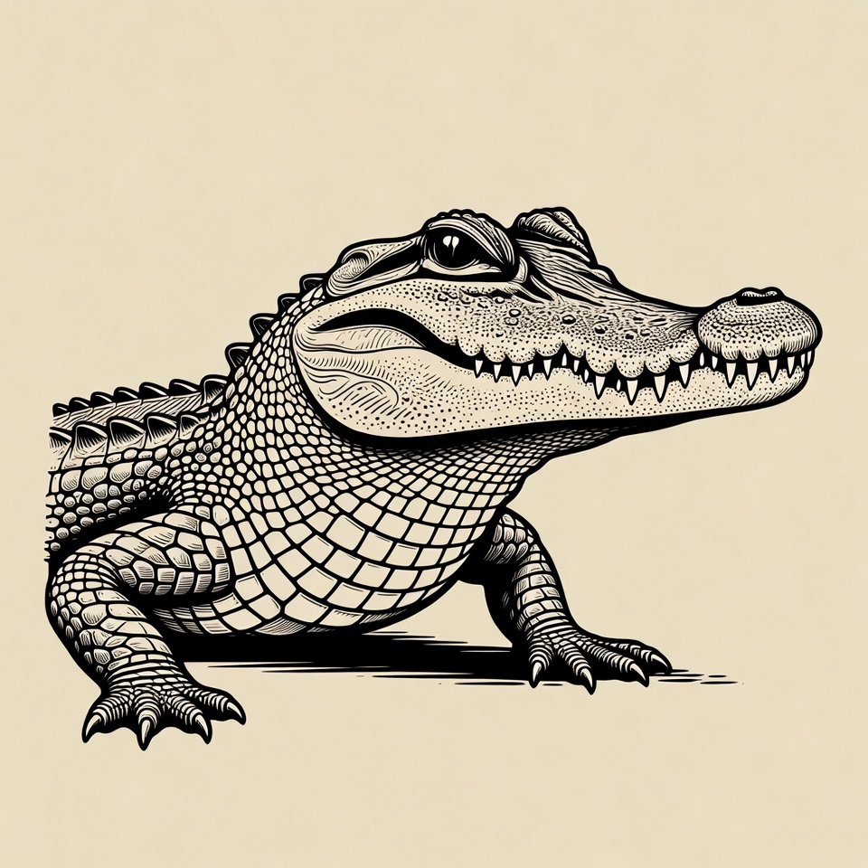 Line Art Baby Alligator Illustration