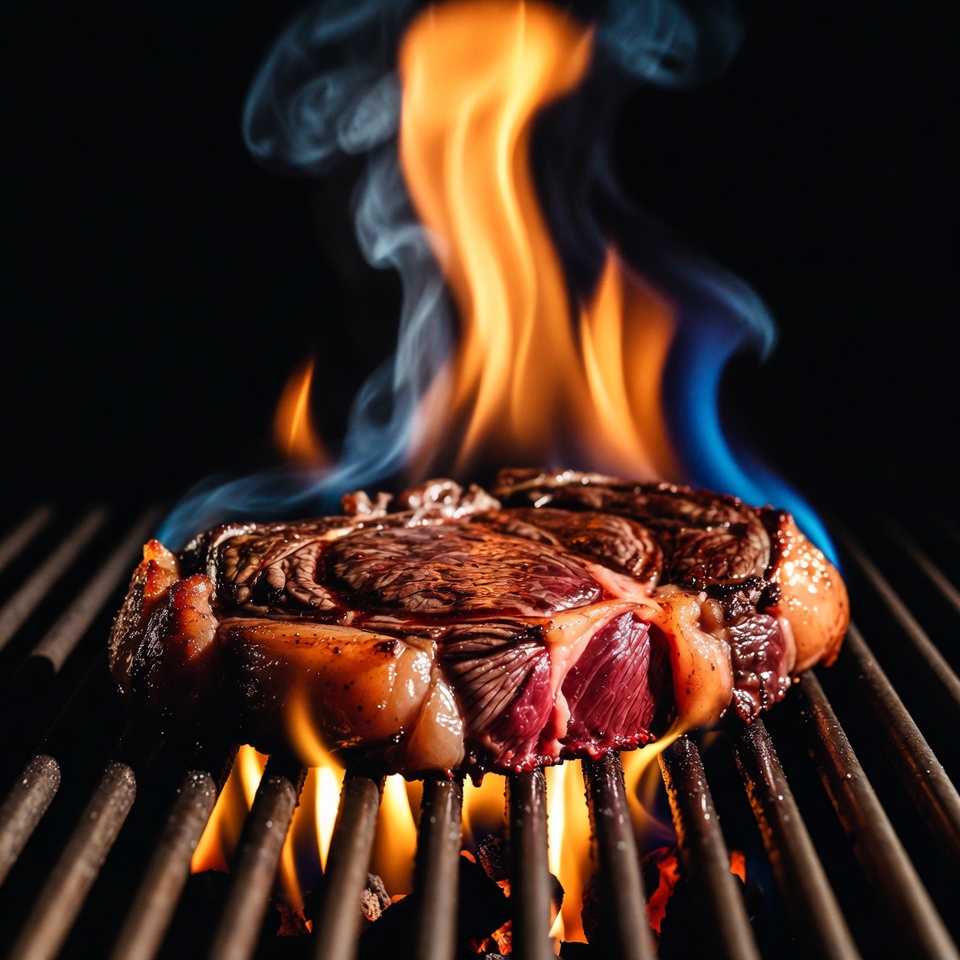 Grilled Ribeye Steak on Flames