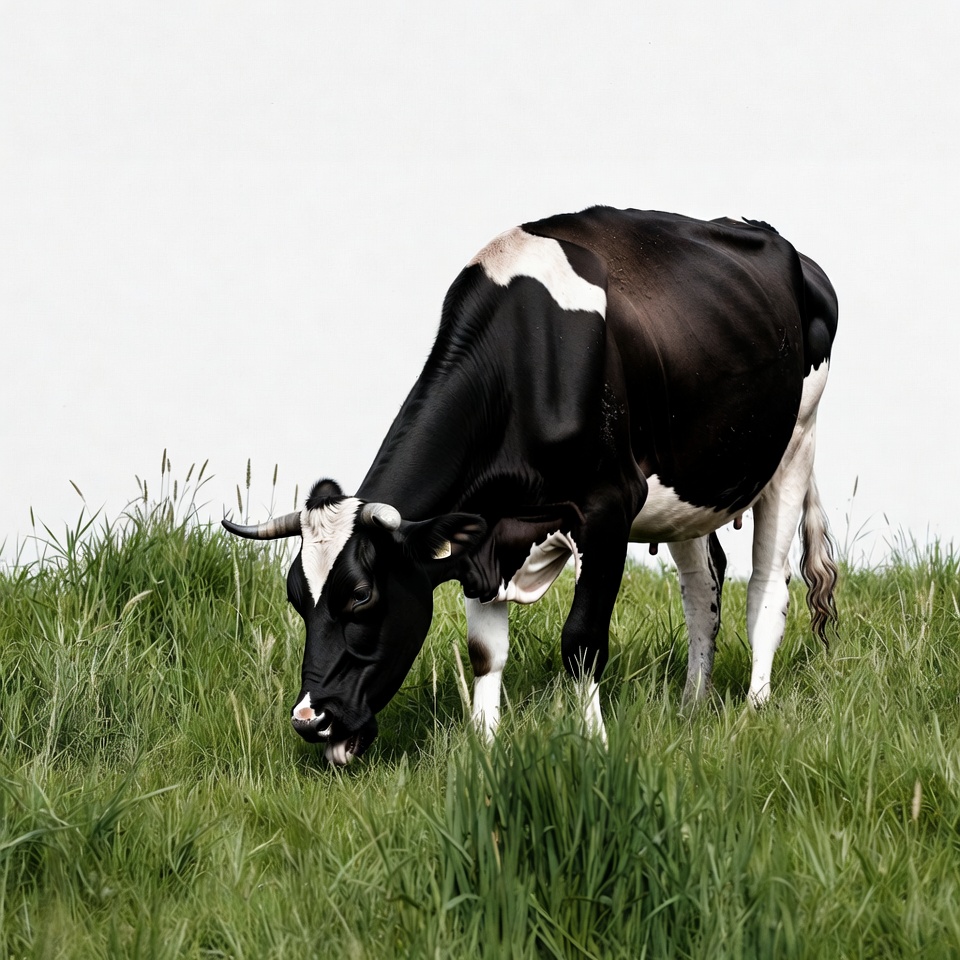 Holstein cow, animal, black and white cow, bovine, dairy cow, eating grass, farm animal, field, grass, grazing cow, green grass, horns, isolated background, livestock, cow