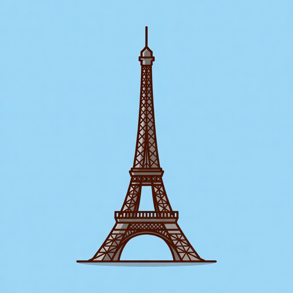 France, Paris, architecture, blue background, brown outline, clipart, icon, illustration, isolated, landmark, line art, tourist attraction, travel, vector, Eiffel Tower