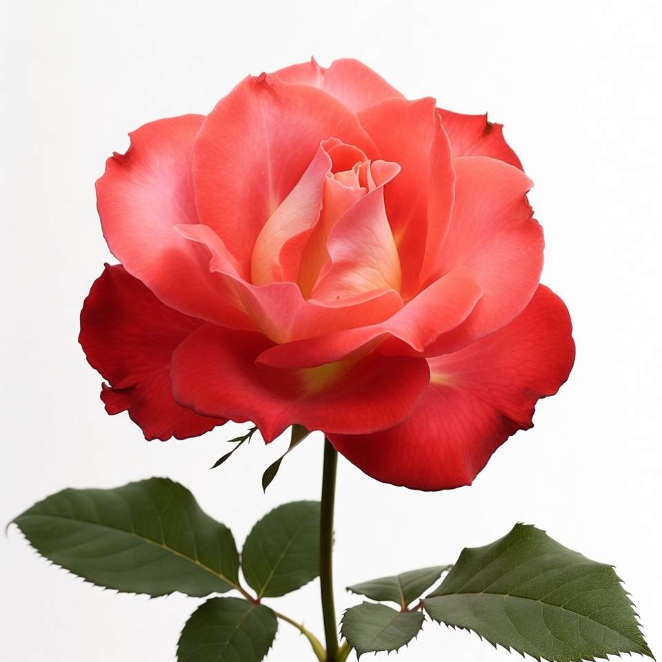 bloom, botany, closeup, floral, flower, fresh rose, garden flower, green leaves, isolated, nature, petals, red rose, romantic flower, rose flower, stem, white background, pink rose