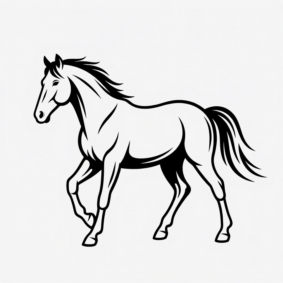 animal, black horse, clipart, equine, farm animal, graphic, illustration, isolated background, legs, line art, mane, outline, side view, silhouette, stallion, striding, tail, vector, walking horse, horse
