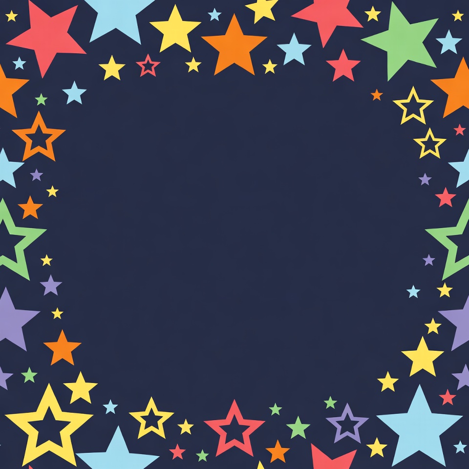 blue stars, border design, clipart, colorful stars, decorative stars, frame, graphic element, green stars, illustration, isolated background, multicolored, navy background, purple stars, red stars, star border, star frame, yellow stars, stars