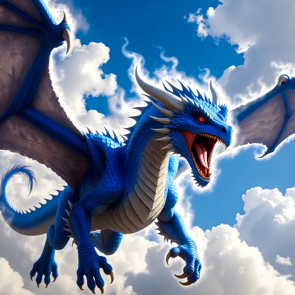 Blue Dragon Roaring in Sky