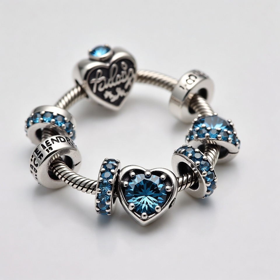 beaded bracelet, blue gems, charm bracelet, engraved charms, family love, fashion accessory, friends bead, gemstone beads, heart charms, heart shaped, isolated background, jewelry, love charm, silver bracelet, silver jewelry, bracelet