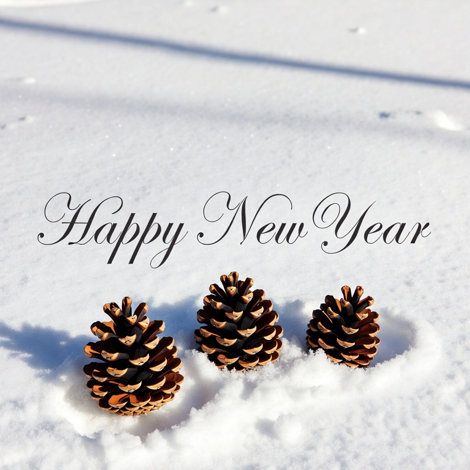 Three Pine Cones Happy New Year Snow