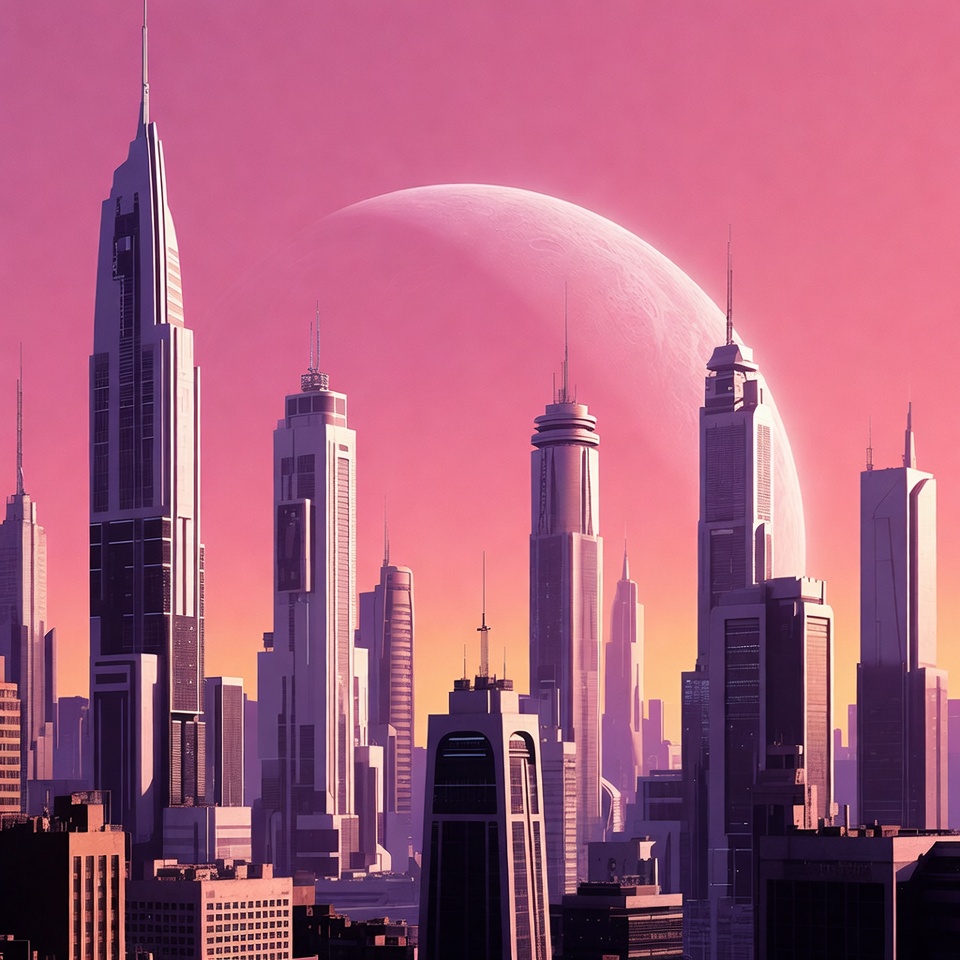 Futuristic Cityscape with Giant Pink Moon