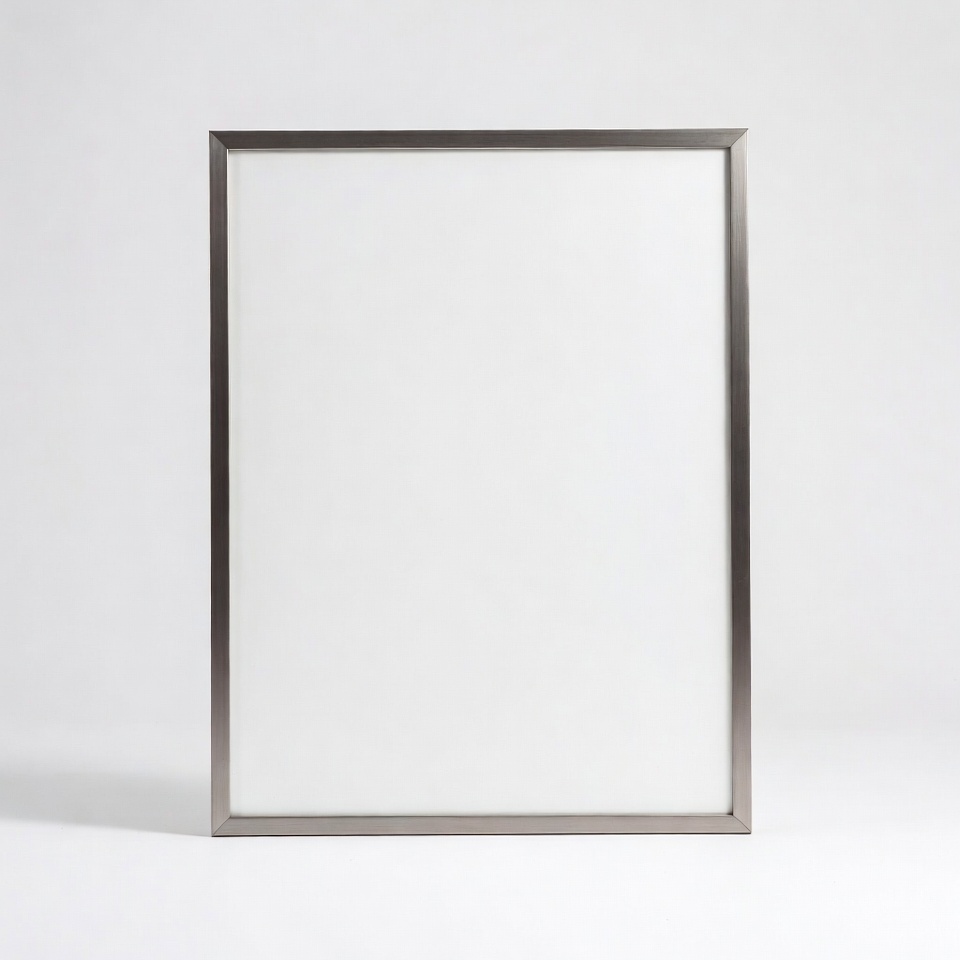 art frame, blank frame, display frame, empty frame, empty mat, isolated background, metal frame, photo frame, poster frame, rectangular frame, silver frame, wall frame, white background, white frame, picture frame
