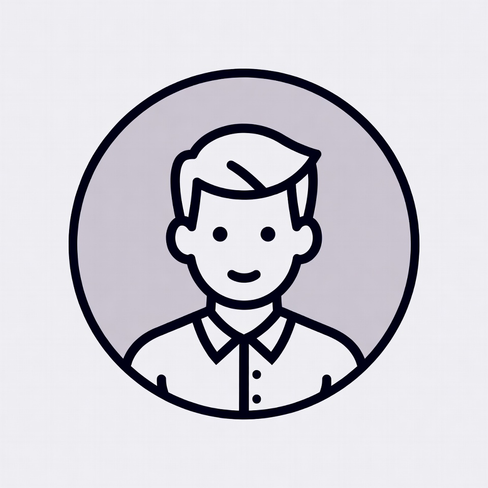 White, avatar, cartoon, circle frame, clipart, collared shirt, dress shirt, friendly face, icon, illustration, isolated background, line art, male, profile picture, short hair, simple, smiling man, vector, man