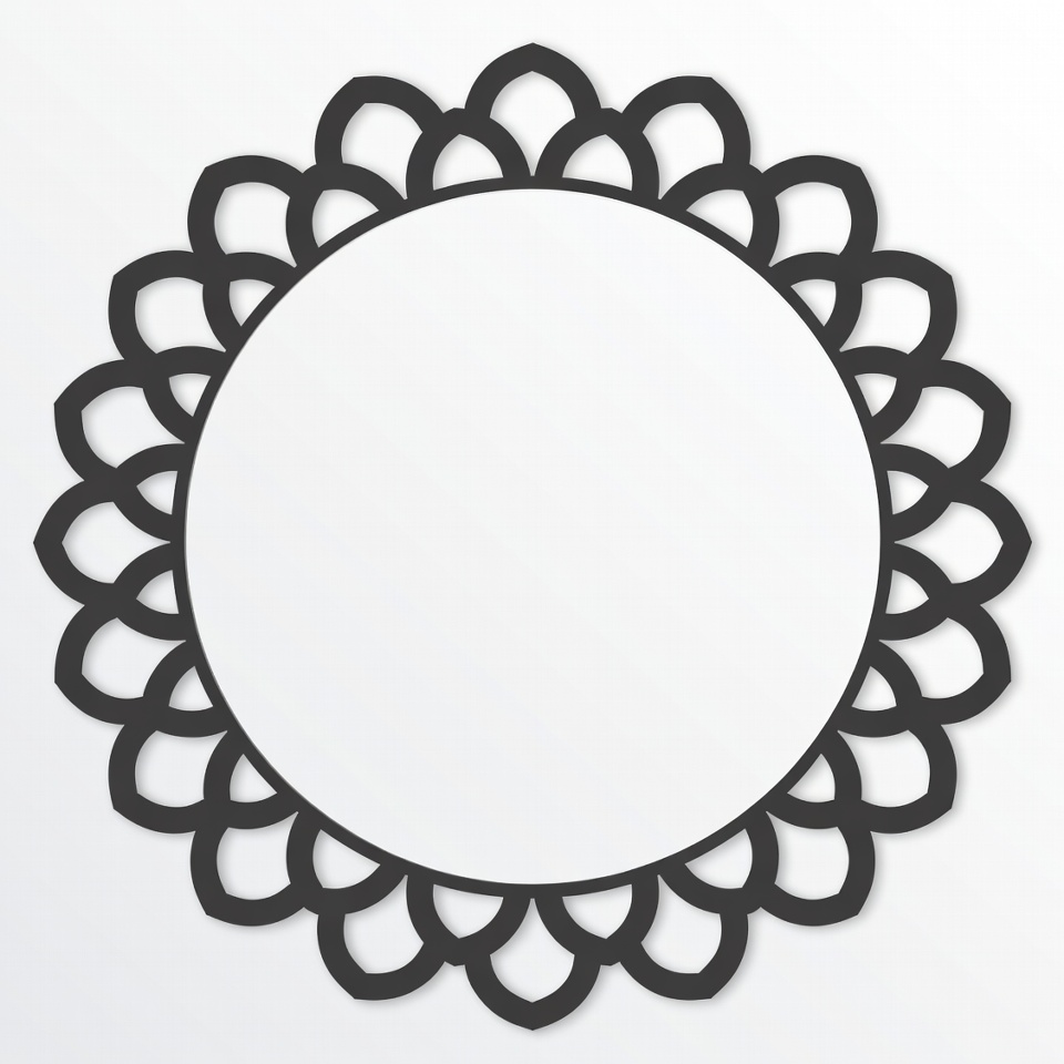 black silhouette, border art, clipart, craft template, decorative frame, empty center, floral circle, floral frame, graphic element, illustration, isolated background, lace design, ornate circle, petal edge, round border, scalloped border, simple design, vector graphic, wedding frame, circle frame
