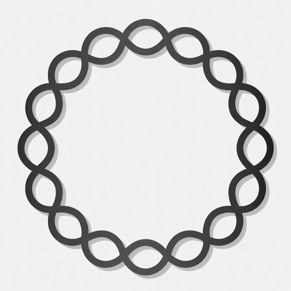 A simple black line art illustration depicts a circular DNA double helix on a white background. The helix forms a perfect ring with smooth, interlocking strands. It is a flat vector-style graphic with subtle shadows.