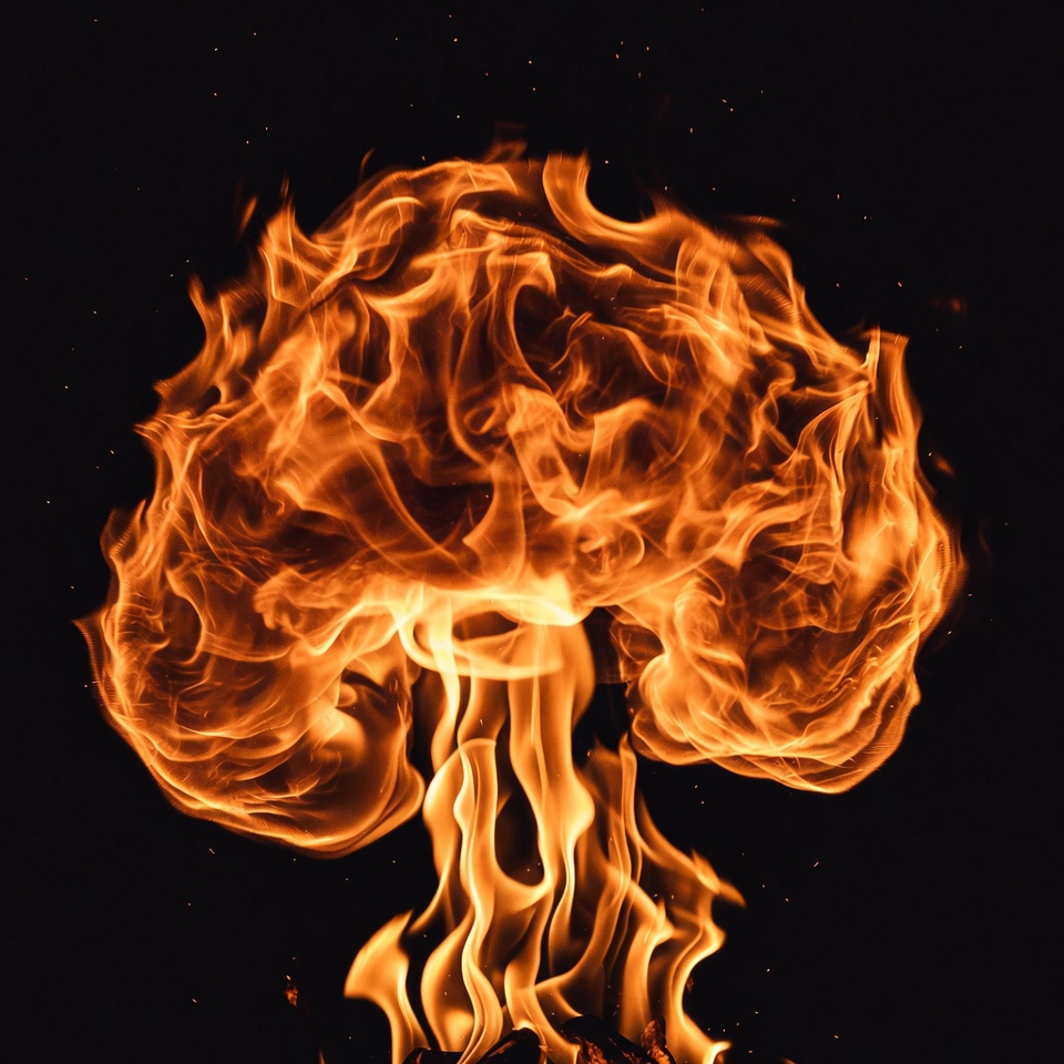 black background, burning, destruction, detonation, energy, explosion, fiery blast, fire explosion, fireball, flames, heat, inferno, intense fire, isolated, nuclear blast, orange fire, pyrotechnics, volcanic eruption, yellow flames, mushroom cloud