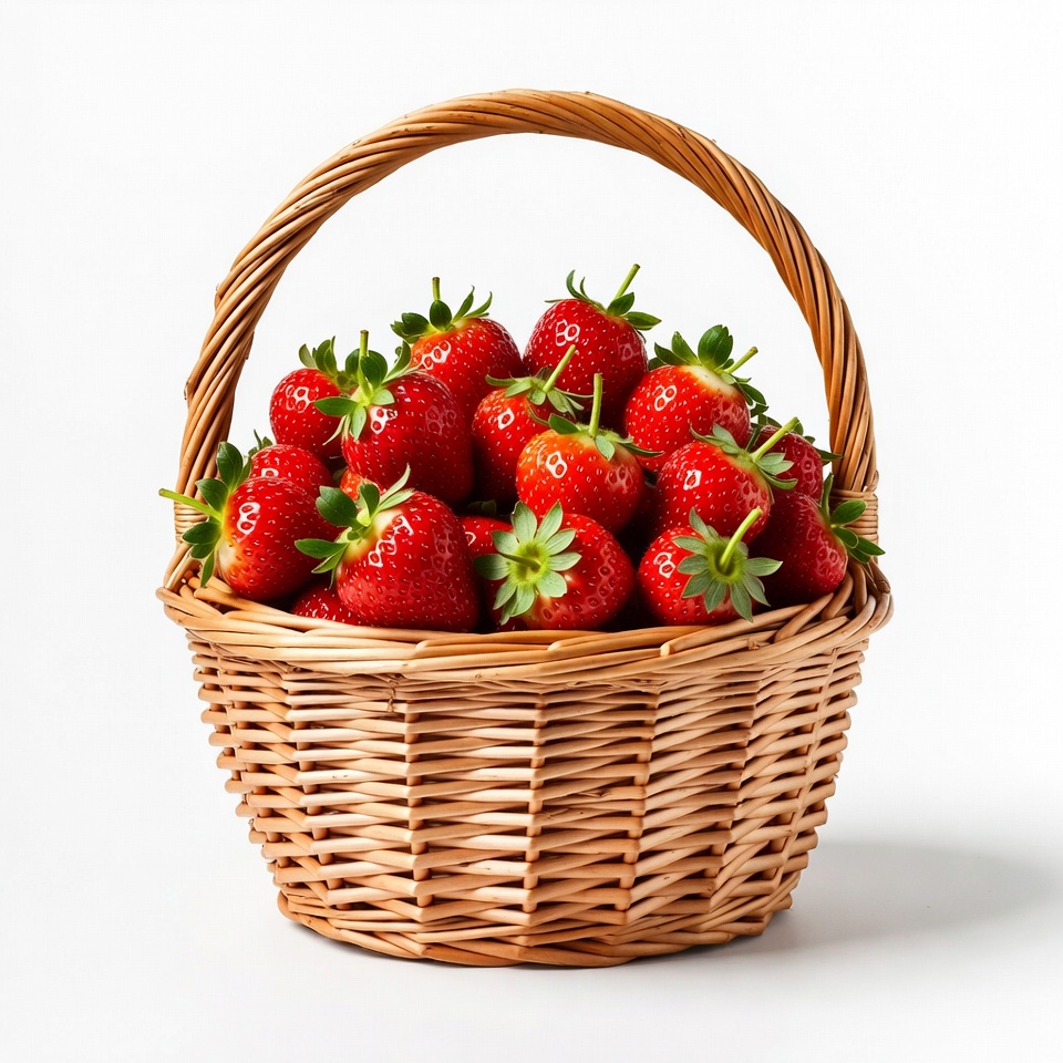 Fresh Strawberries in Wicker Basket