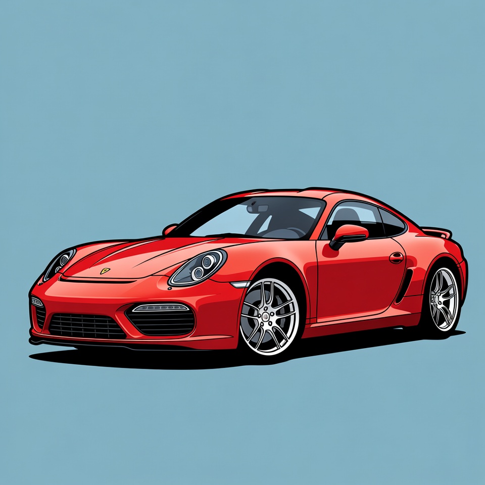 Red Porsche 718 Cayman Illustration